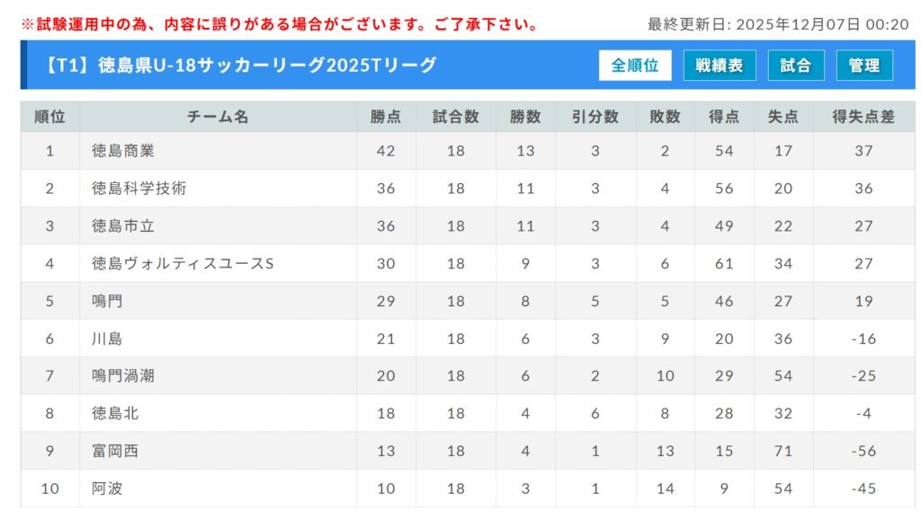 高円宮杯U-18サッカーリーグ2025 徳島県Tリーグ