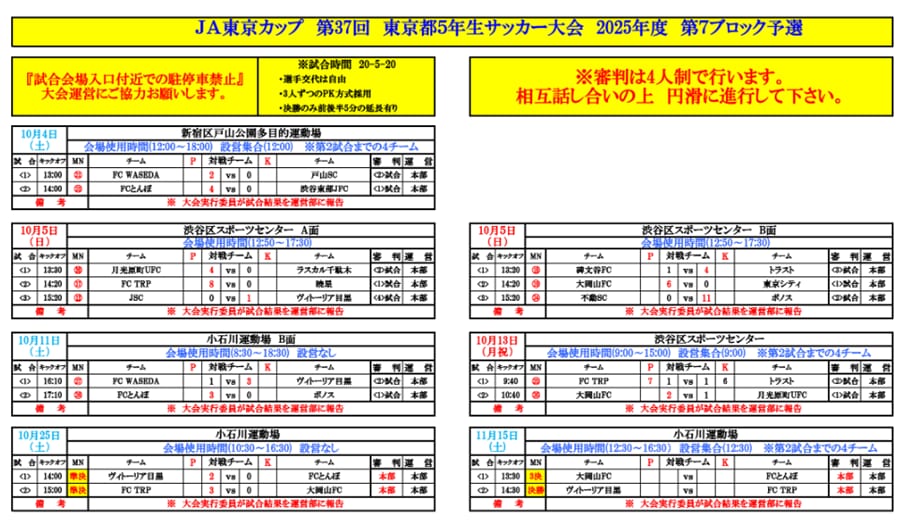 2025年度JA東京カップ 第37回東京都5年生サッカー大会 第7ブロック