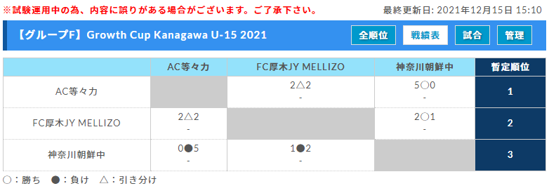 ◆2021年度 神奈川県CJY(クラブジュニアユース)U-15サッカーリーグ(2022年1月~3月、同年代の大会)