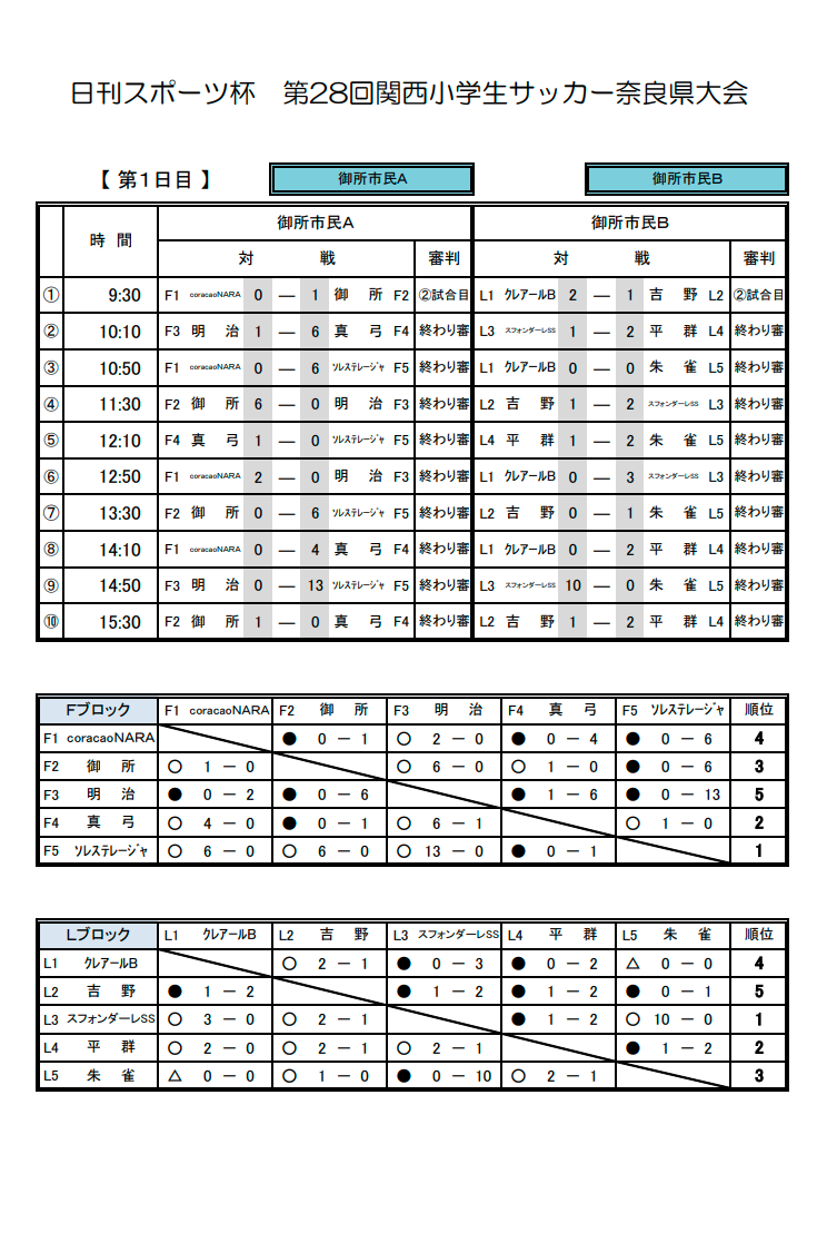 決勝トーナメント 準決勝・順位決定戦・決勝 :奈良県フットボールセンター