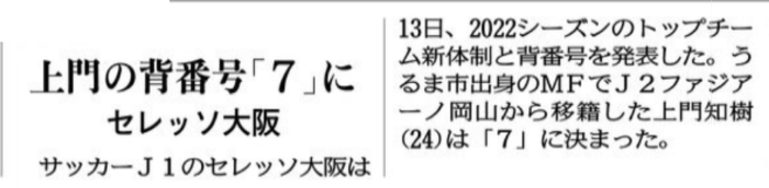 強烈なシュート武器に 上門知樹(C大阪、MF)