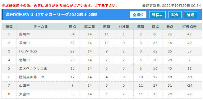 4月から10月16日?にかけて行われた 高円宮杯JFA U-15サッカーリーグ2022岩手の情報をお知らせします。