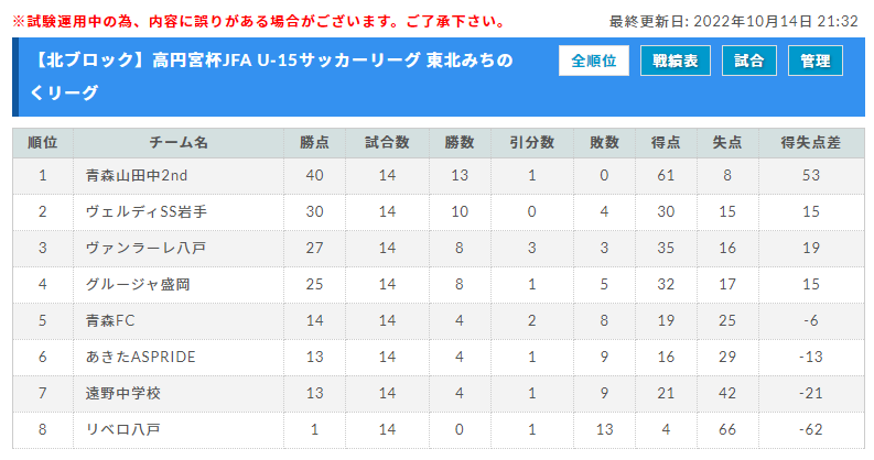 4月2日から行われた2022年度 高円宮杯JFA U-15サッカーリーグ 東北みちのくリーグの情報をお知らせします。