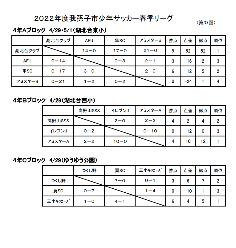 2022年度 我孫子市少年サッカー春季リーグ(4年生)