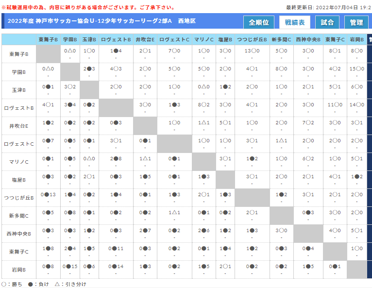 4月16日から行われている2022年度 神戸市サッカー協会U-12少年サッカーリーグ2部Aの情報をお知らせします。
