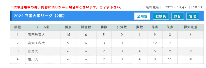 令和 4 年度 四国大学サッカーリーグ(兼 第 71 回全日本大学サッカー選手権大会四国地区予選会)