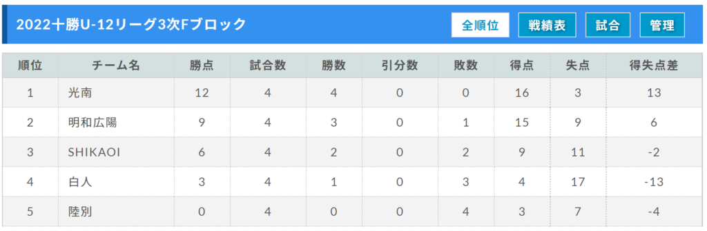 3次ラウンド Aブロック代表決定リーグ  最終結果掲載
