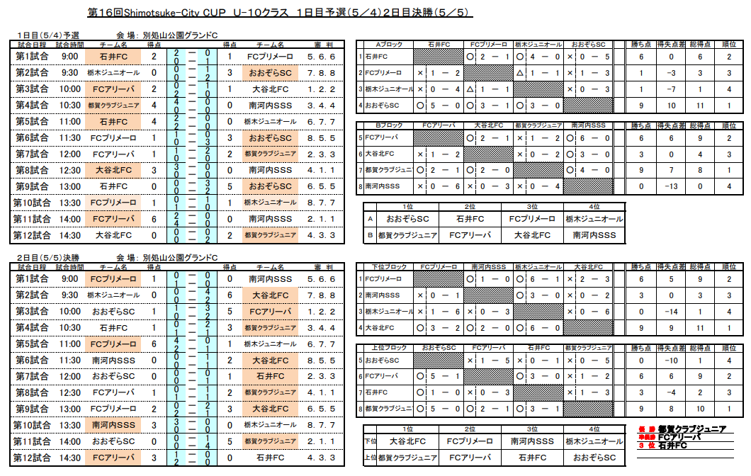 5月4日(木)5日(金)に開催された2022年度第16回Shimotsuke-City CUP少年サッカー大会 U-12.10.8の情報をお知らせします。