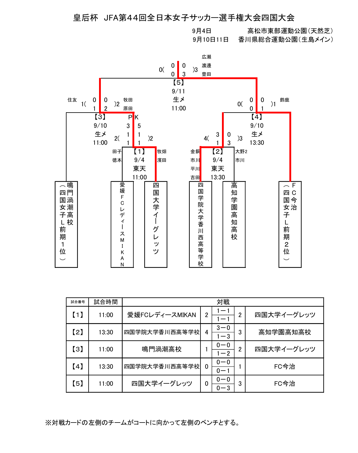 9月4日から行われた皇后杯JFA第44回全日本女子サッカー選手権大会 四国大会の情報をお知らせします。