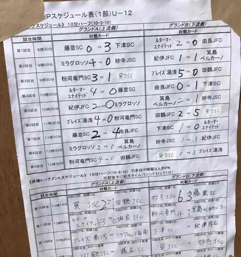 1位:下津SC、2位:ルターマ・ユナイテッド、3位:由良JFC、4位:藤並SC