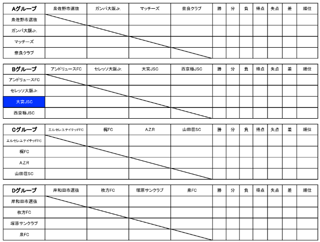 ◆Dグループ (1位:センアーノ神戸、2位:正覚寺FC、エルマーノ大阪、MARAGA CF OSAKA)