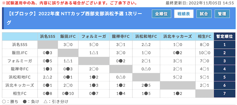 10月2日から行われた「NTT西日本グループカップ 第55回静岡県U-12サッカー大会 西部浜松地区予選」の情報をお知らせします。