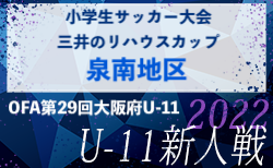 2022年度 OFA第29回大阪府U-11小学生サッカー大会三井のリハウスカップ 泉南地区予選 代表3チーム決定!