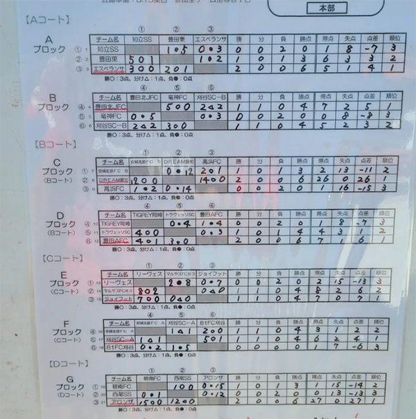 【Aグループ】1位:エスペランサ、2位:豊田東、3位:知立SS