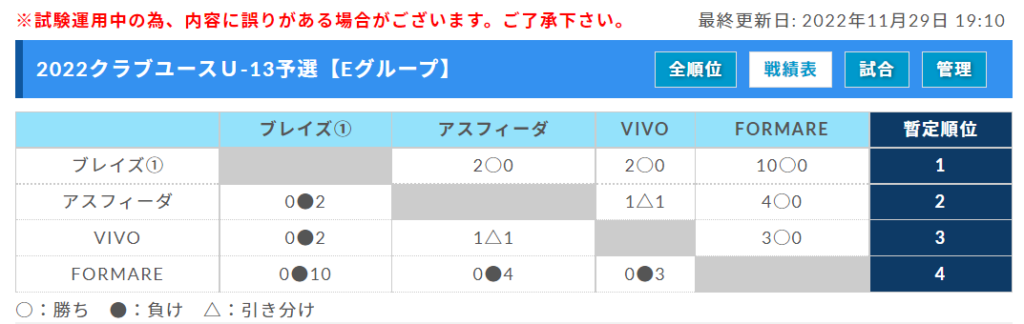 ※チーム名をクリックしていただくと、チーム情報がご覧いただけます。