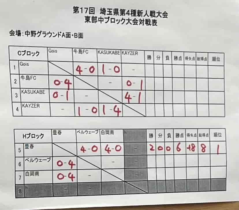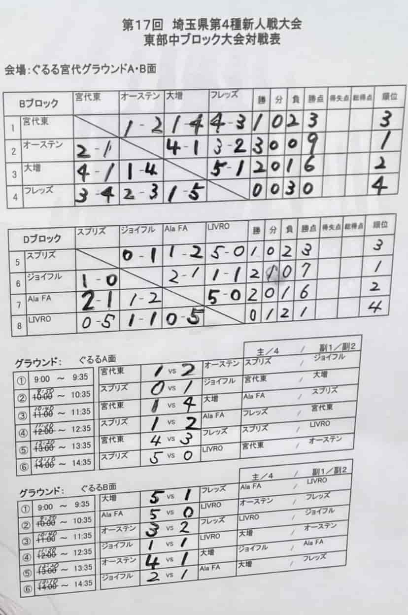 11月13日,20日に行われた第17回埼玉県4種新人戦 U-11 東部中地区予選の情報をお知らせします。