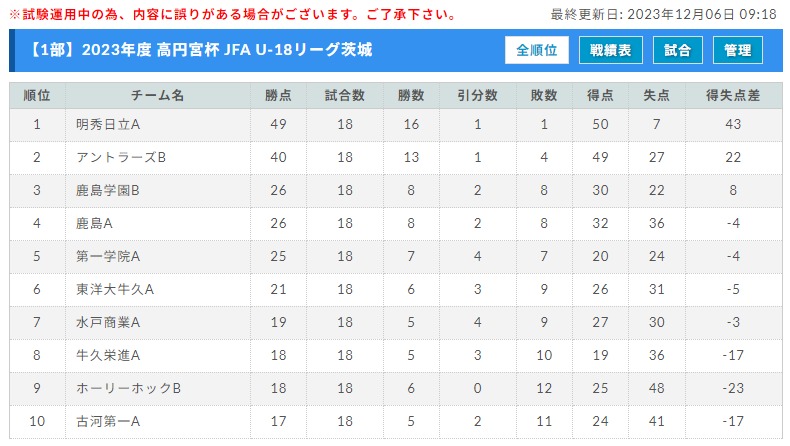 ◎高円宮杯JFA U-18サッカープリンスリーグ2023 関東(2023年4~12月)
