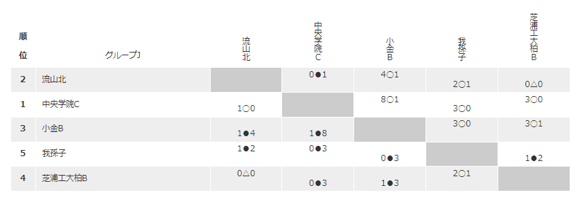 小金B、松戸国際、国分B、二松学舎柏B、豊富・鎌西・沼南・我東