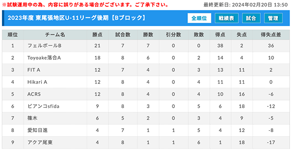 Bブロック 2/18結果入力ありがとうございます!あと3試合!