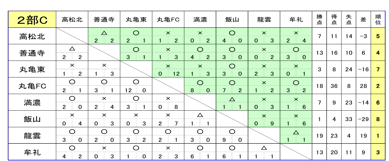 高松北、善通寺、丸亀東、丸亀FC、満濃、飯山、龍雲、牟礼