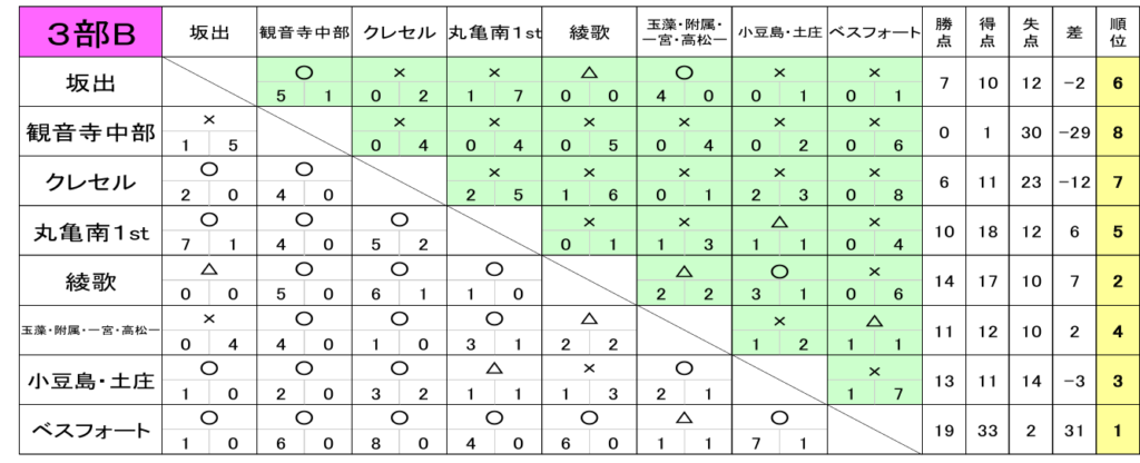 ボラミーゴ、詫間・三豊SC、リフォルマ、善通寺、藤井、坂出東部・白峰、龍雲、志度