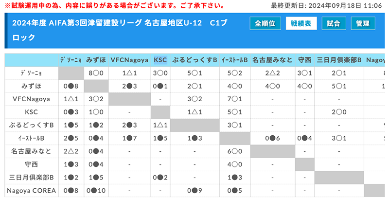 記事内にリーグ表掲載いたしました。
