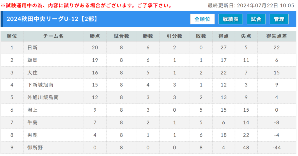 2024年度 JFA U-12サッカーリーグin秋田中央地区リーグ