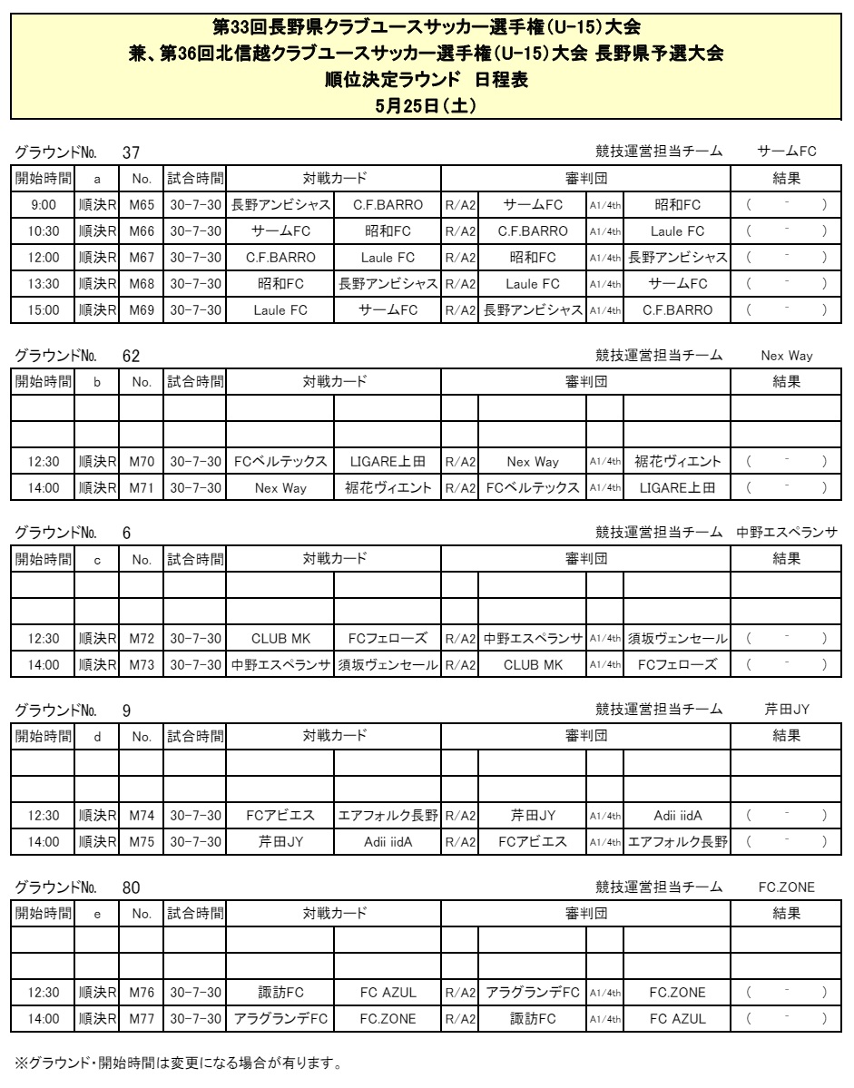 長野県クラブユースサッカー選手権U-15大会の結果情報をお寄せいただき、ありがとうございます!