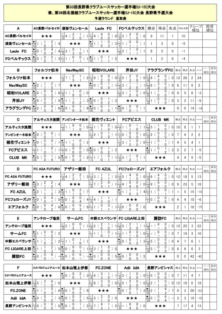 参照:長野県クラブユースサッカー連盟HP、情報を頂きました。松本山雅HP、Forza松本 ジュニアユースInstagram、AC長野パルセイロHP、FC ASA FUTURO HP
