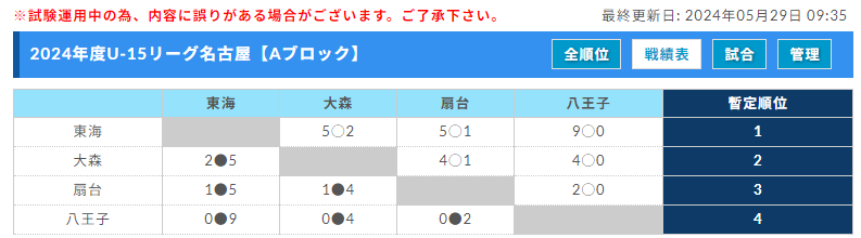 リーグ戦績表(4/20,21~5月末)