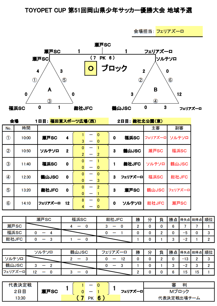 Hブロック総社FCの予選リーグの結果情報ありがとうございます!とても嬉しいです。