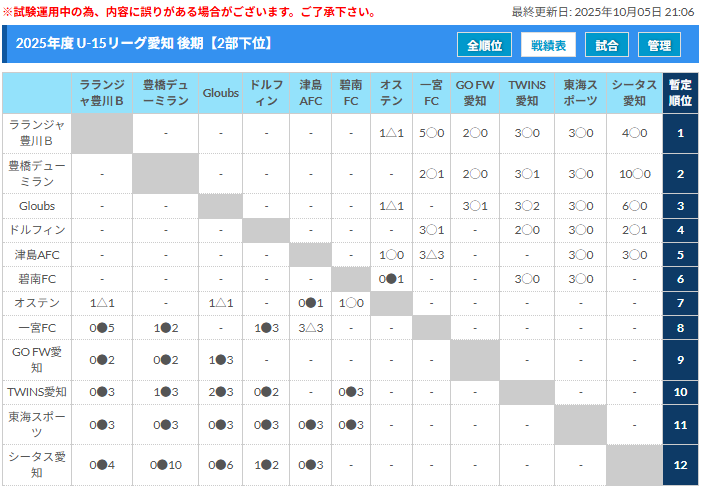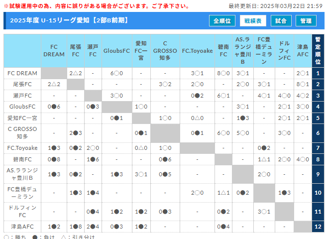 高円宮杯 JFA U-15サッカーリーグ愛知2025 TOP・1部・2部