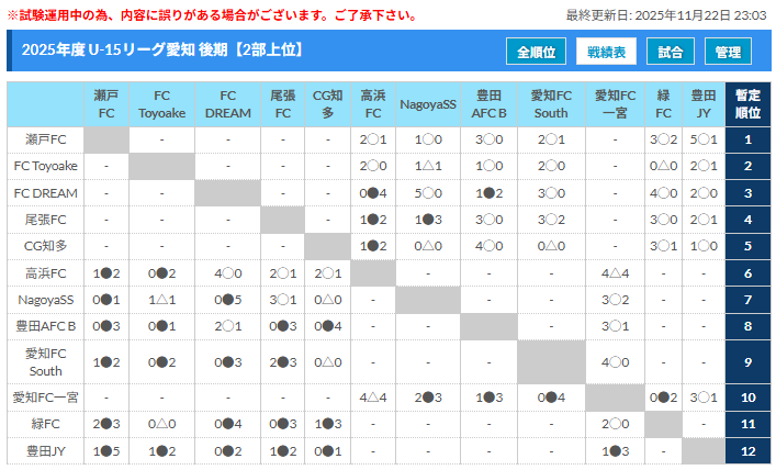 高円宮杯 JFA U-15サッカーリーグ愛知2025 TOP・1部・2部