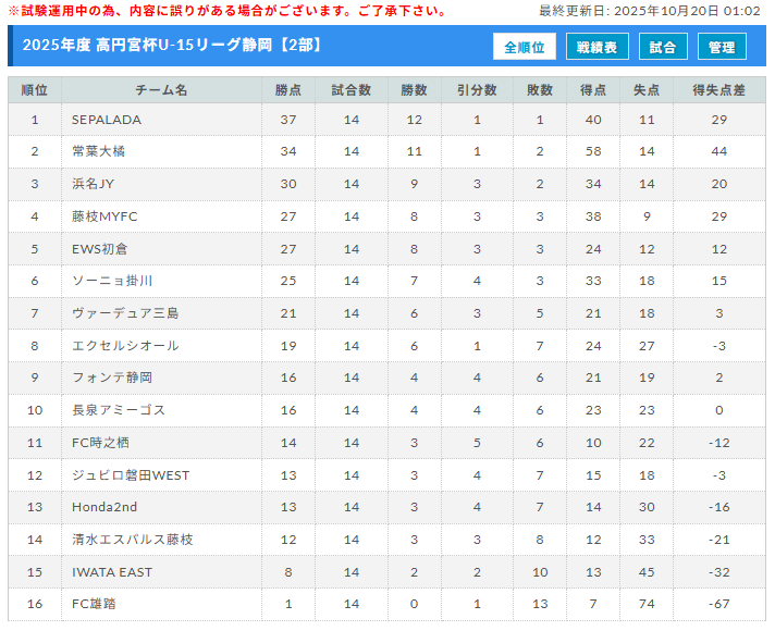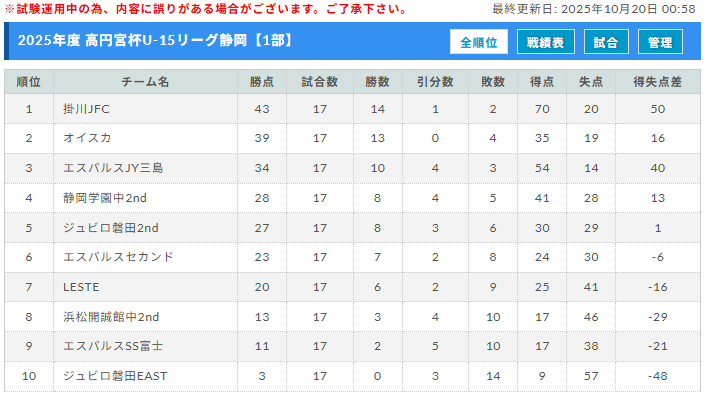 高円宮杯JFA U-15サッカーリーグ2025静岡TOP・1・2・3部