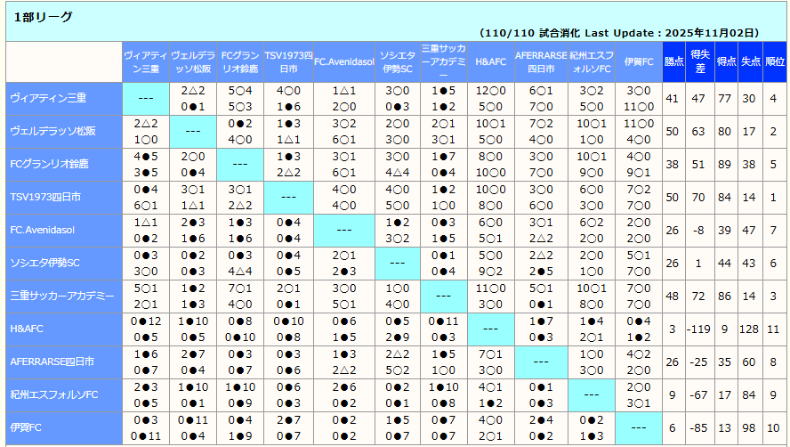 3部南【最終結果】9/20 FC.ISE-SHIMA優勝