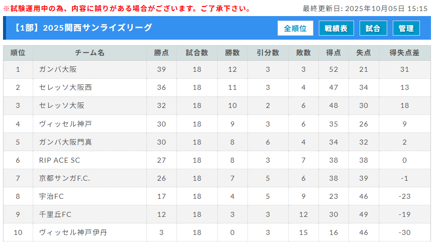 12:15 Wizards FC 0-0 Vervento京都FCリーグ戦表より情報提供ありがとうございます!