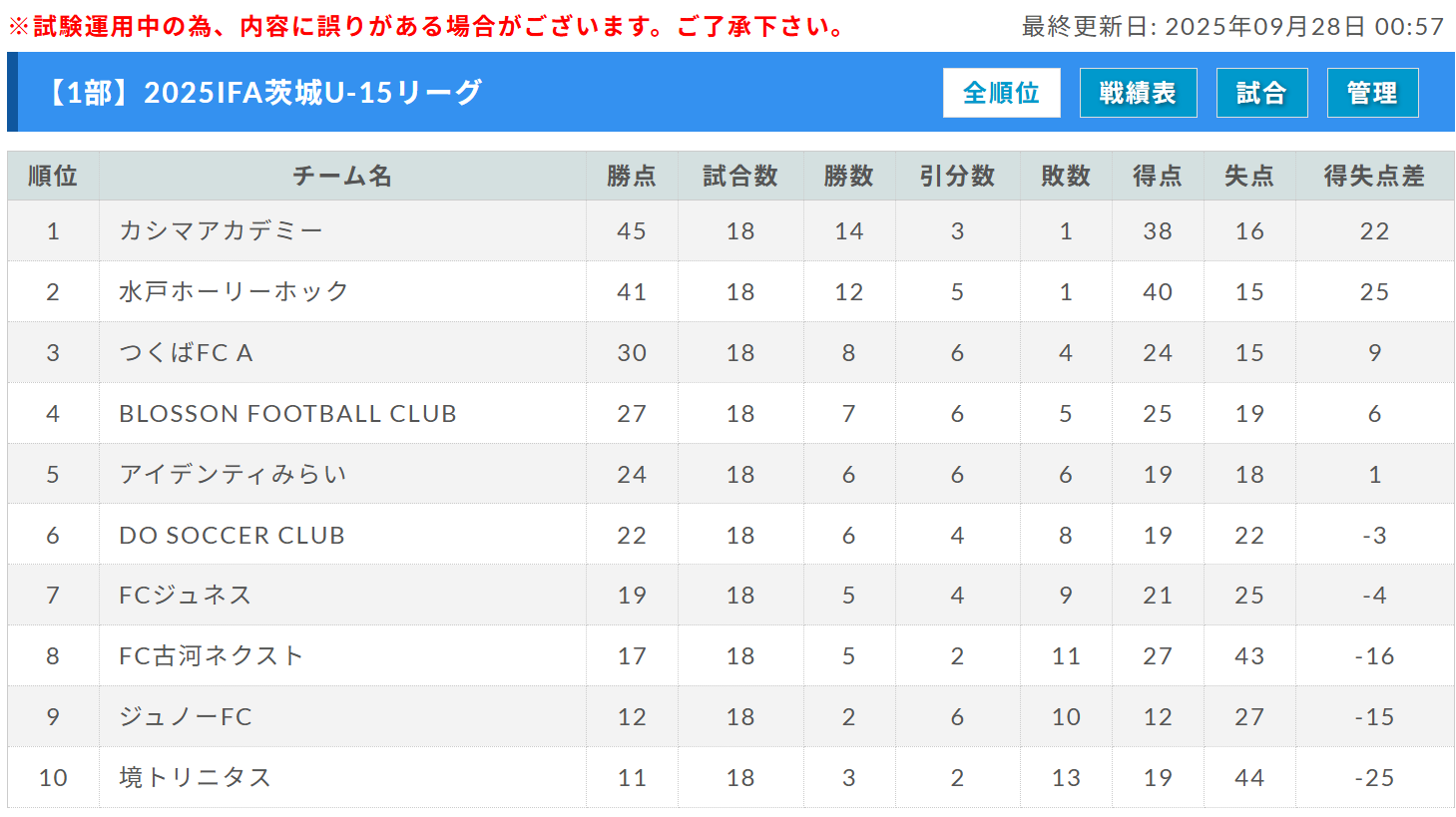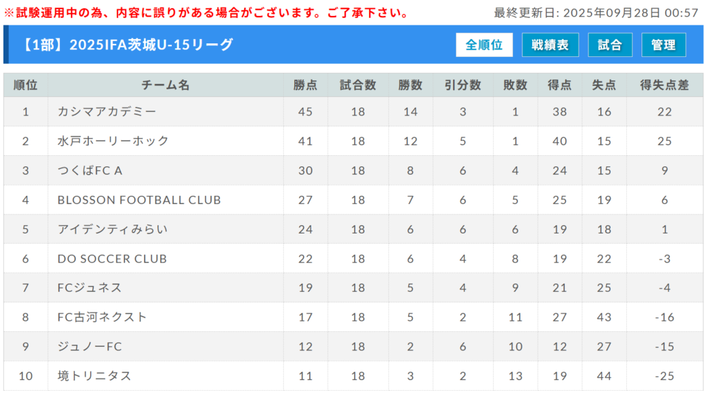 高円宮杯JFA U-15サッカーリーグ2025茨城 IFAリーグ