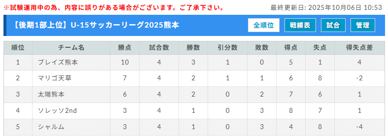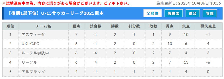高円宮杯 JFA U-15サッカーリーグ2025熊本