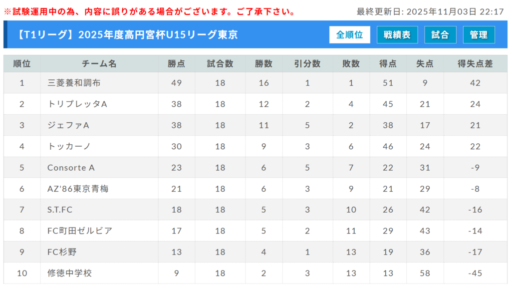 高円宮杯JFA U-15サッカーリーグ2025東京 T1リーグ