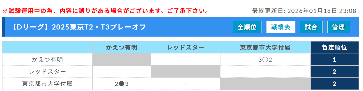 なお前期9試合が終了した時点の順位によって、最大10チームを東京都予選会へシードする。