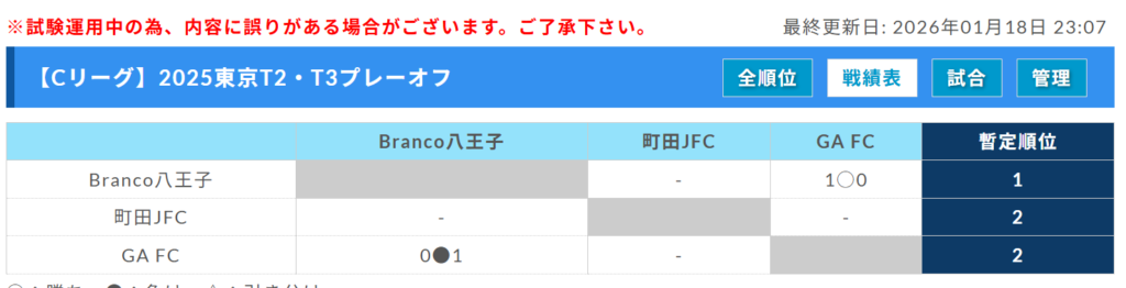 Cリーグ 11/24最終結果掲載!