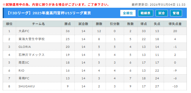 高円宮杯JFA U-15サッカーリーグ2025東京 T3リーグ