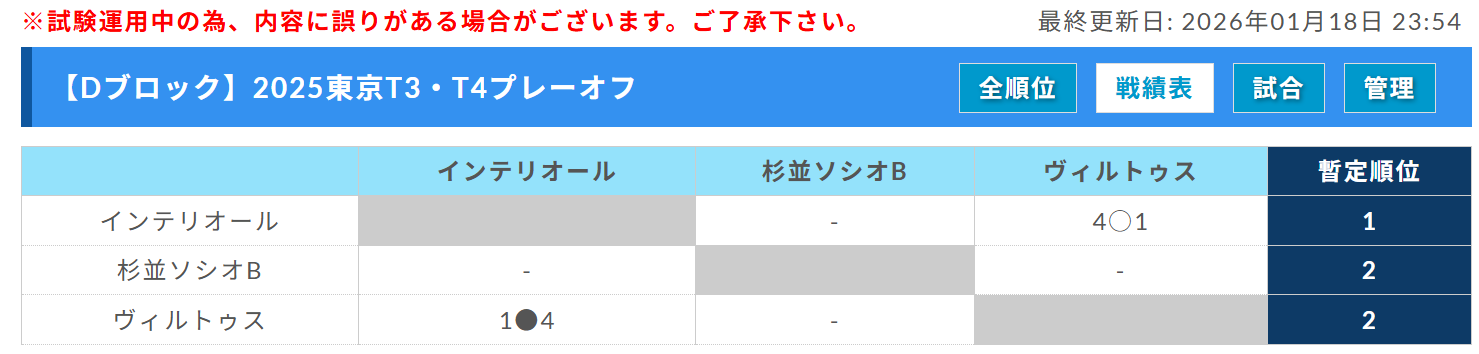 バディSC、両国FC A、プログレッソ、GAFC、杉並FC、杉並アヤックス、エルシエロ、ConsorteB