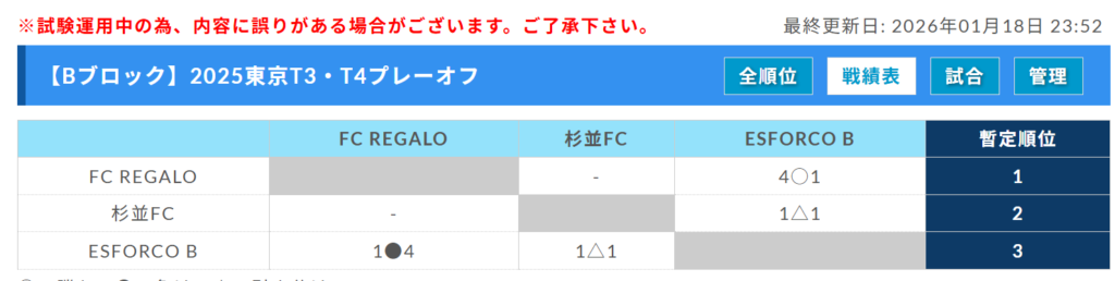 FC REGALO、杉並FC、ESFORCO B