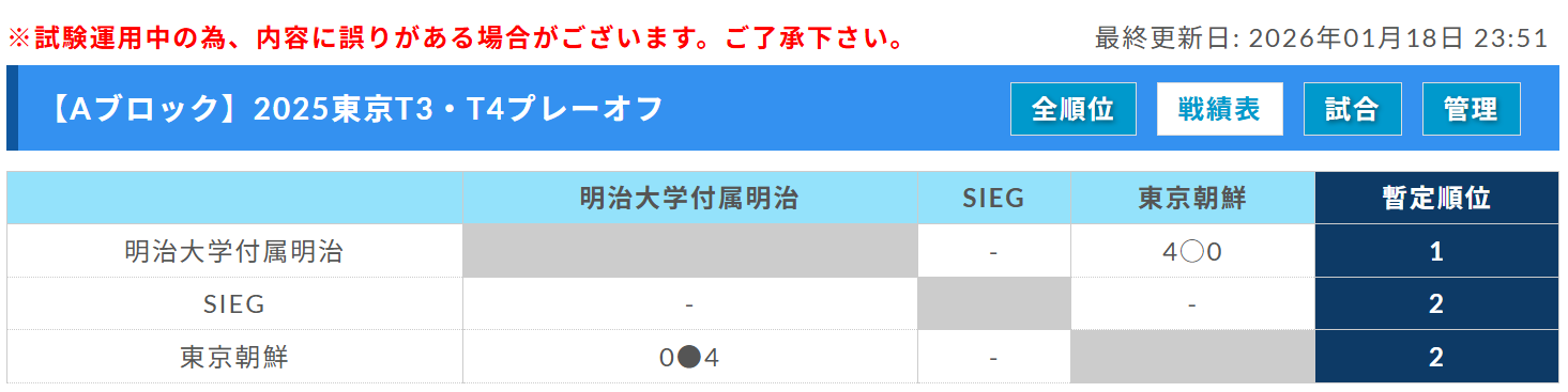 なお前期9試合が終了した時点の順位によって、最大10チームを東京都予選会へシードする。