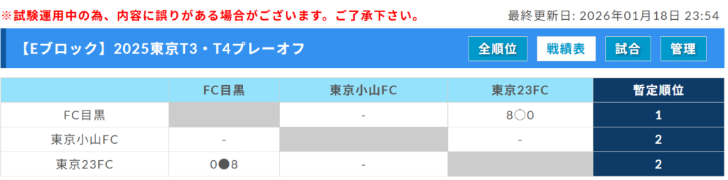 FC目黒、東京小山FC、東京23FC