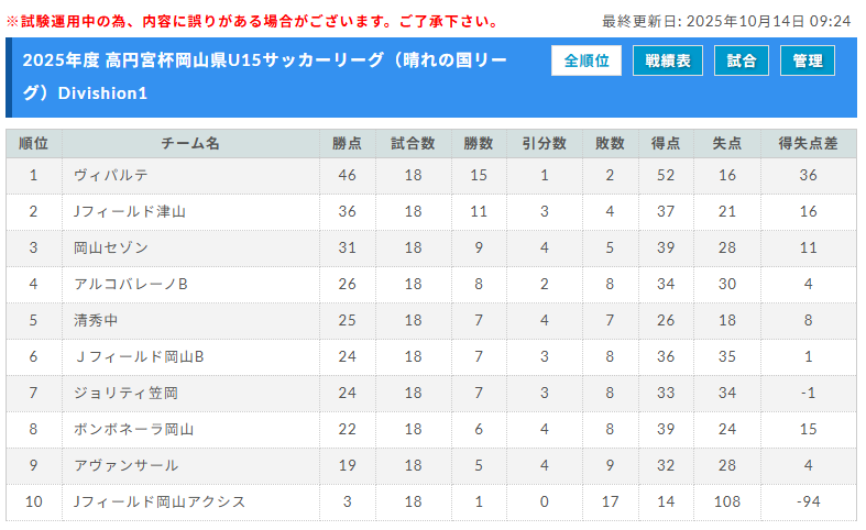 2025年度 高円宮杯岡山県U15サッカーリーグ(晴れの国リーグ)