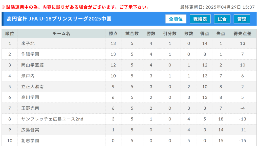 2024年度 高円宮杯JFAU-18プリンスリーグ中国 延期分11/30,12/1結果掲載!優勝は岡山学芸館!準優勝の高川学園とともにプレミアプレーオフ出場