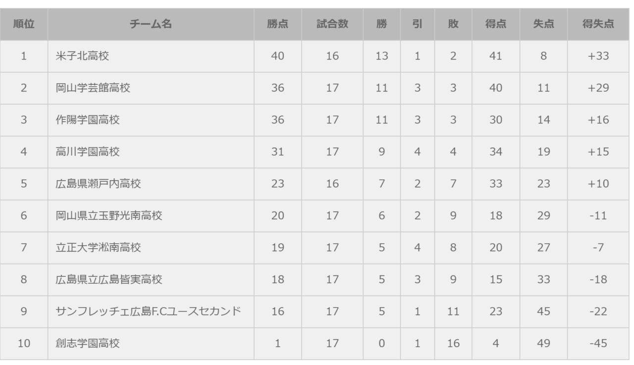 米子北、岡山学芸館、高川学園、立正大淞南、瀬戸内、サンフレッチェ広島ユース2nd、玉野光南、広島皆実、作陽学園、創志学園
