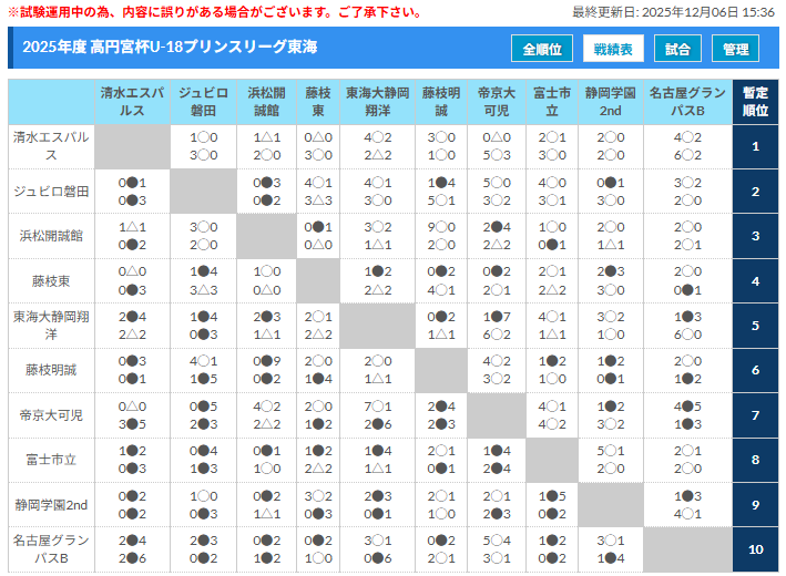 参照:高円宮杯 JFA U-18サッカープリンスリーグ東海公式